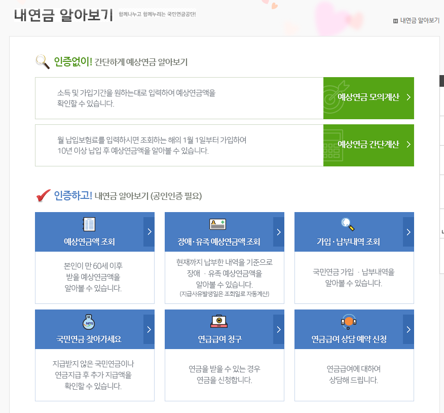 아래의 링크를 클릭하게 되면 인증 없이 간단하게 국민연금 수령액 확인이 가능합니다.