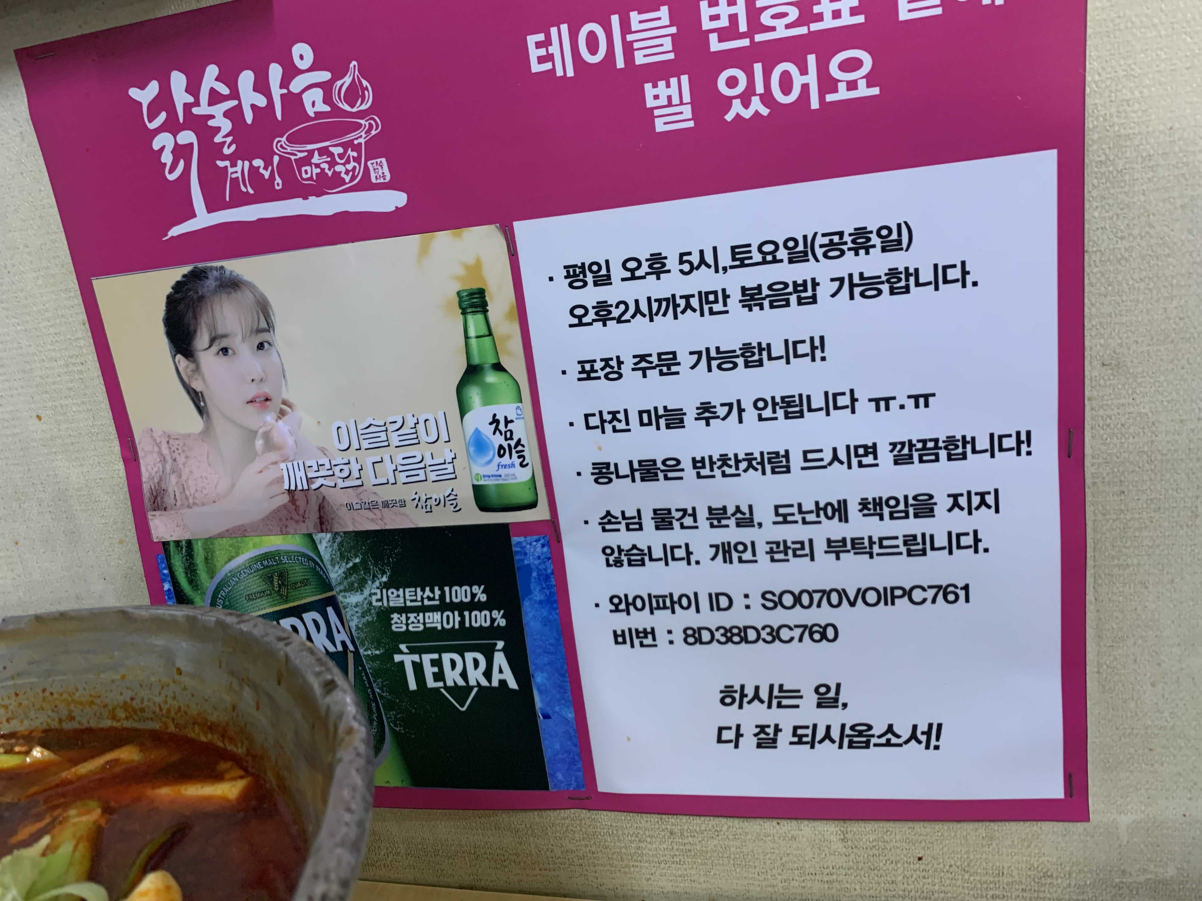마늘 추가가 필요 없어보이는데, 역시 한국 사람…. 마늘을 여기서 더 추가해달라는 분이 있으니 메뉴판에 추가안된다고 써 있던거겠죠? 대단대단 역시 마늘과 쑥만 먹고 사람 된 신화가 있는 민족ㅎㅎㅎ(tmi…근데 웅녀가 먹은데 마늘이 아니라 달래라는 말도 있더군요…ㅎㅎ)