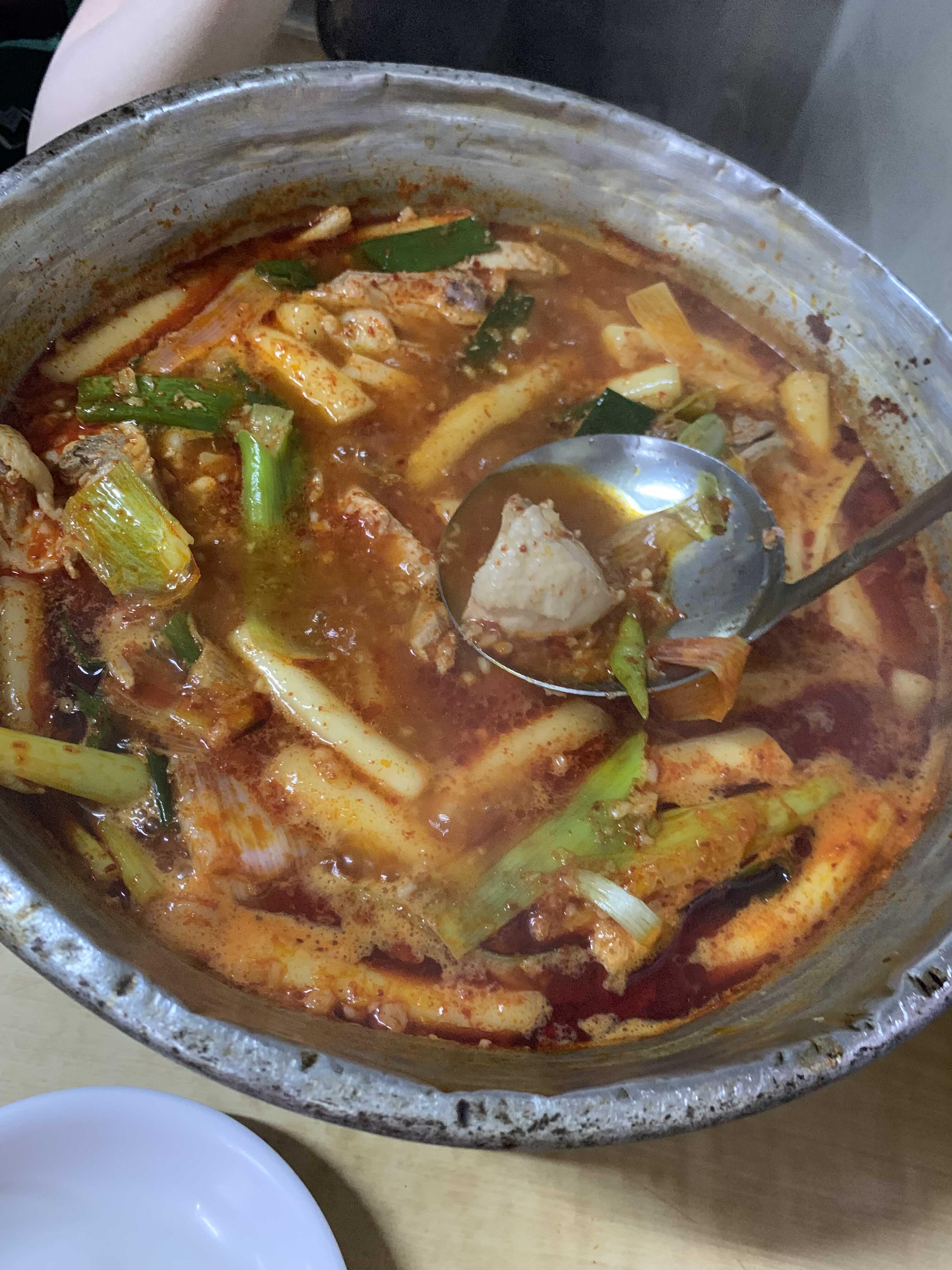 언제쯤 먹어도 되는지 물어보니, 끓다보면 떡이 올라오는데 떡을 먼저 먹다가 나중에 닭을 먹으라고 하셨어요.