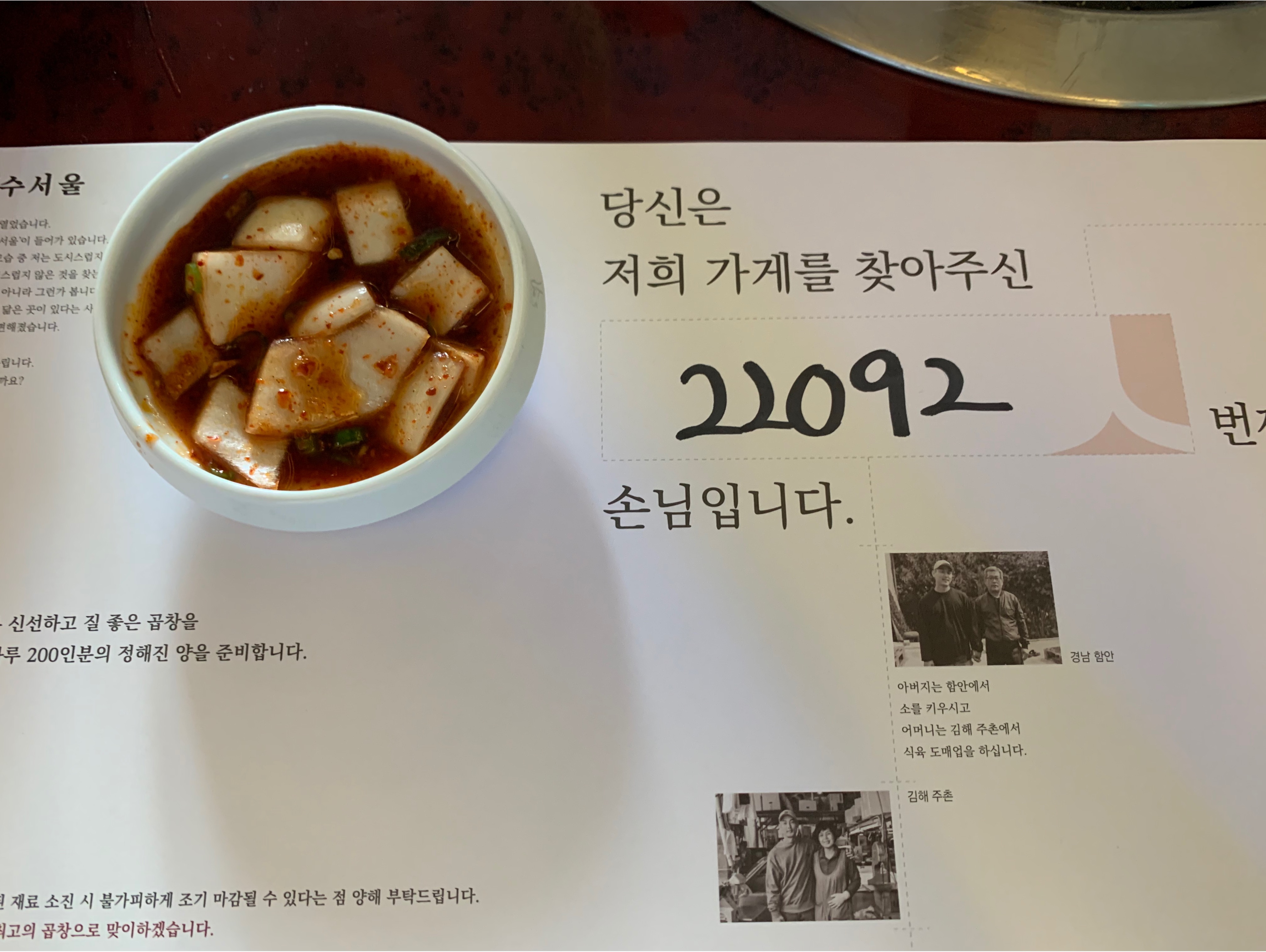 테이블에 당신은 저희 가게를 찾아주신 22092번째 손님입니다.
