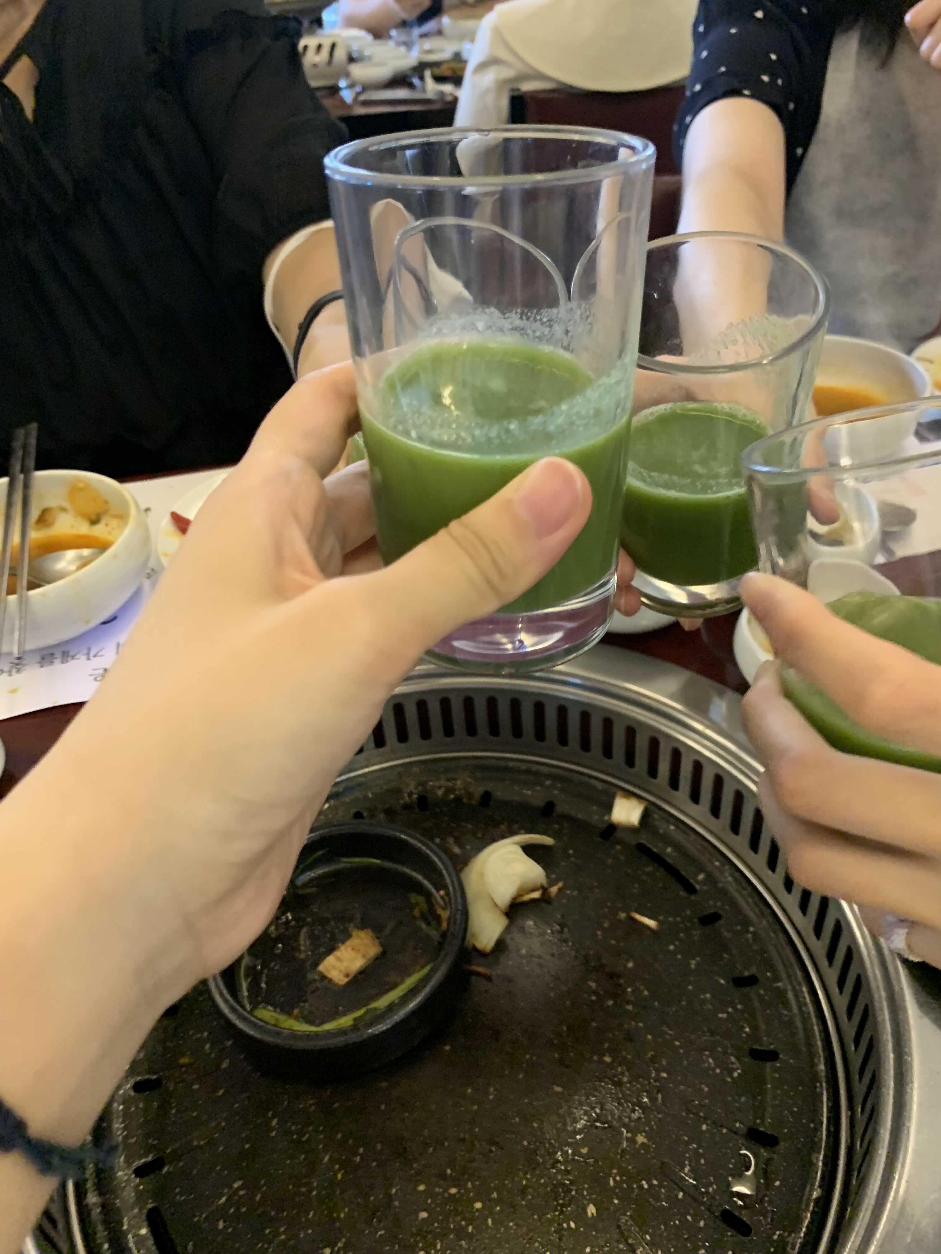 소곱창구이와 소곱창전골을 다 먹으면 후식을 준다고 하셔서 기다렸습니다. 샤베트를 준다고 했었는데, 오늘은 샤베트가 아닌 사과케일쥬스를 주신다고 하시네요.