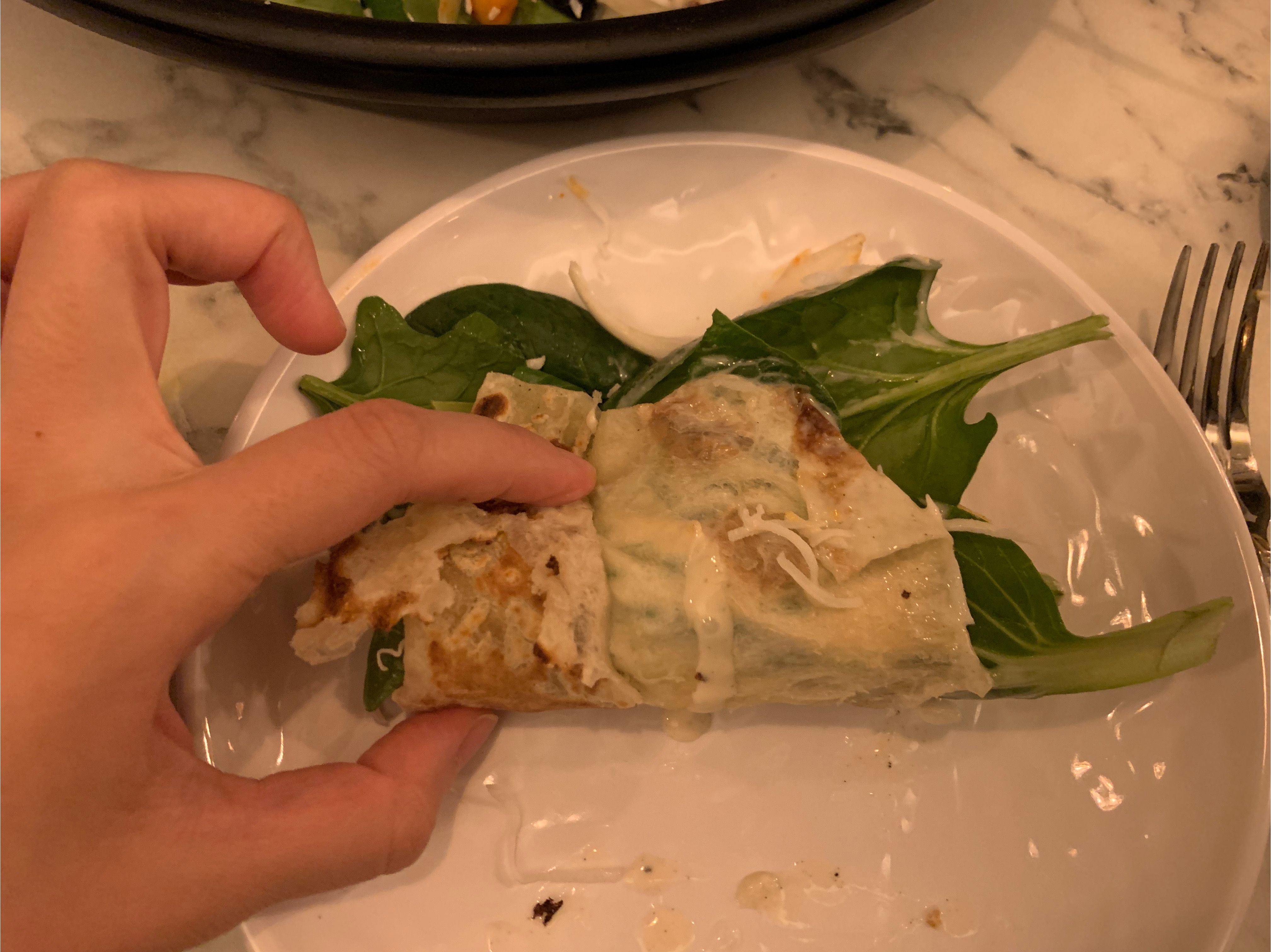 허니버터 난을 뜯다보면 허니버터가 아래로 흘러서