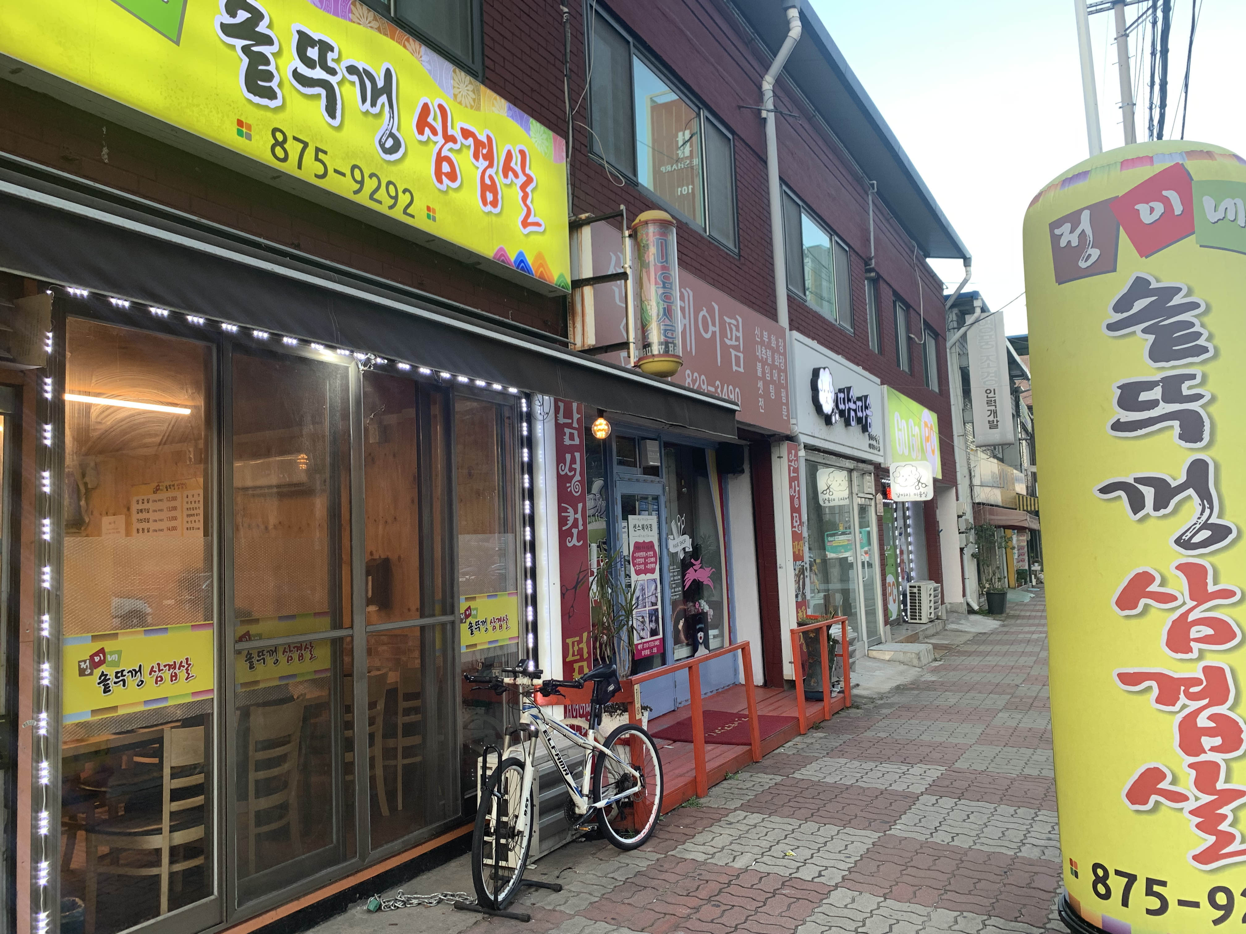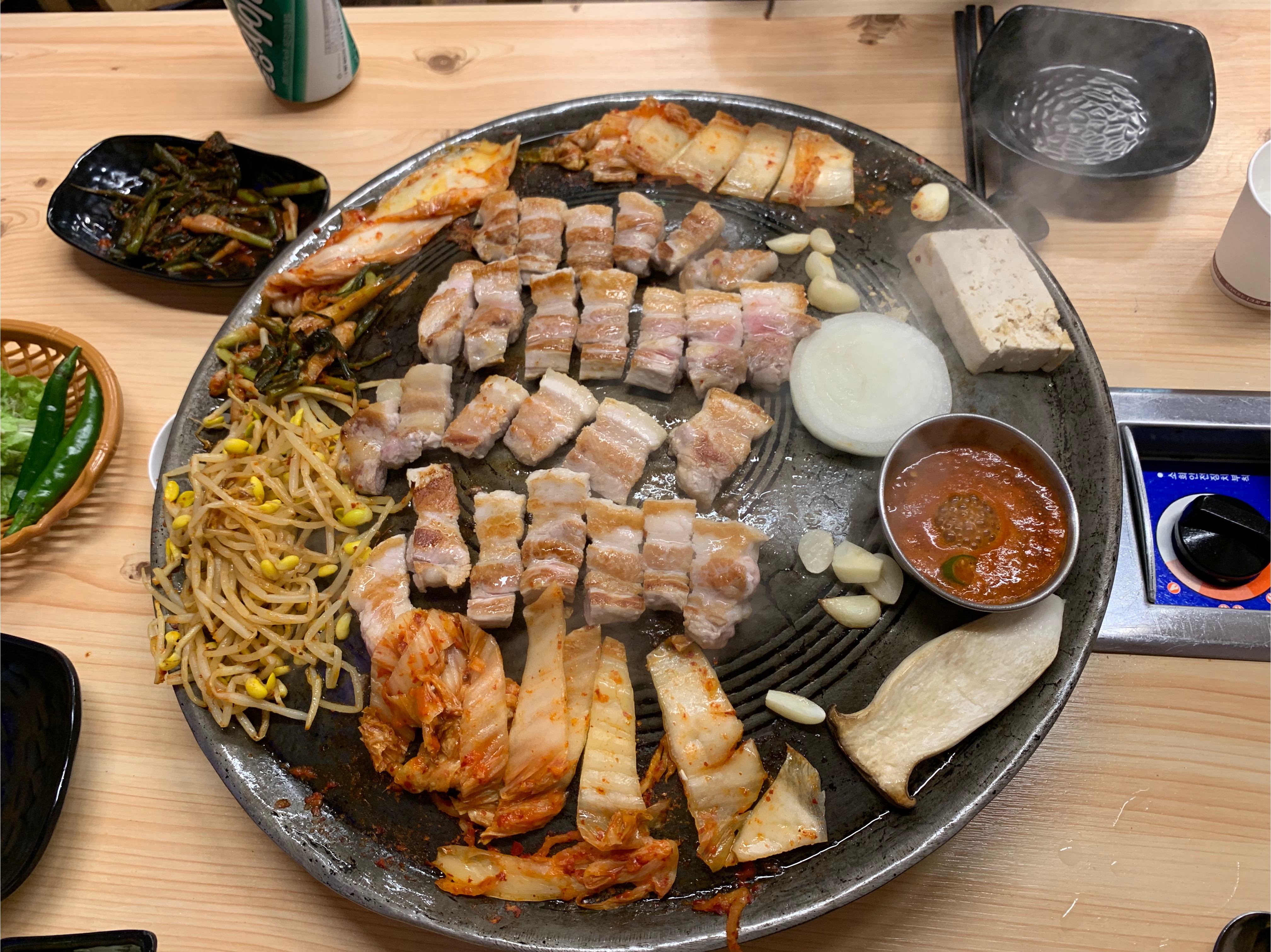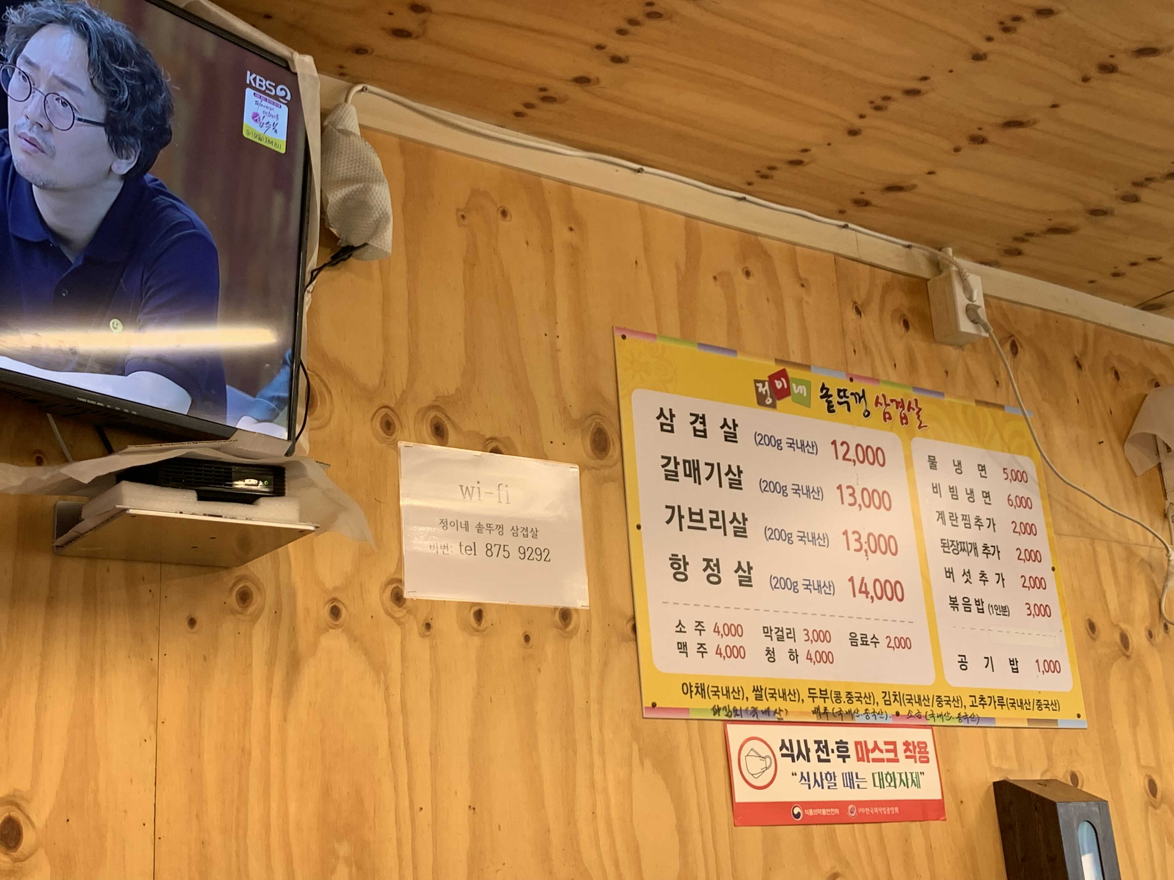 깜짝 놀란게 작은 삼겹살 집이었는데, 안에 사람이 많아서 놀랐어요! 특히 아저씨들이 많아서