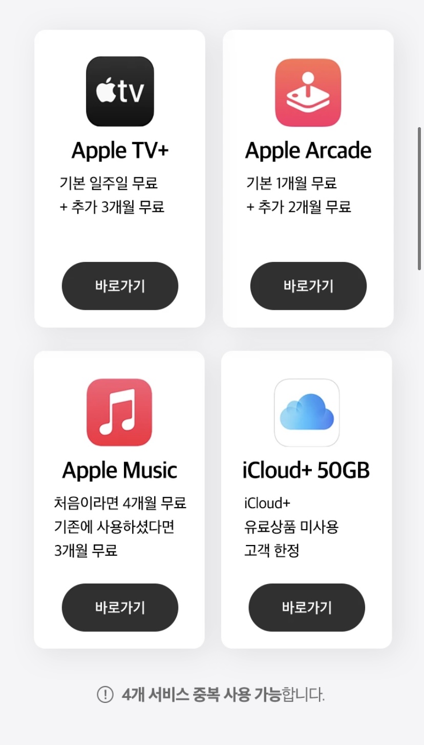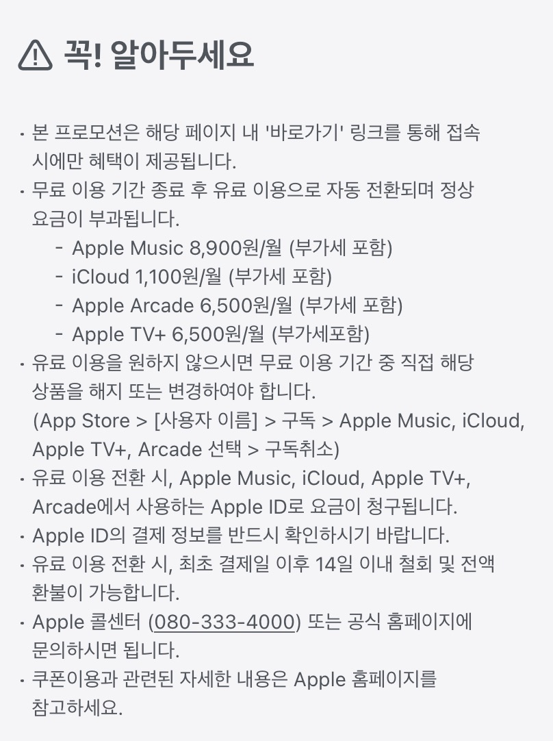 생각보다 꽤 오래전부터 했던 행사네요! 저는 오늘.. 알았는데, 이미 카카오페이로 앱스토어 결제를 하고 있는 저는 따로 번거로움 없이, 링크를 통해 애플티비와 애플뮤직을 구독했습니다! 아이클라우드는 이미 사용을 하고 있어서, 패스!