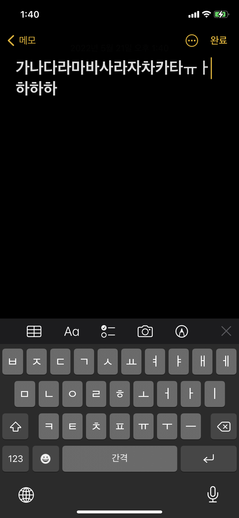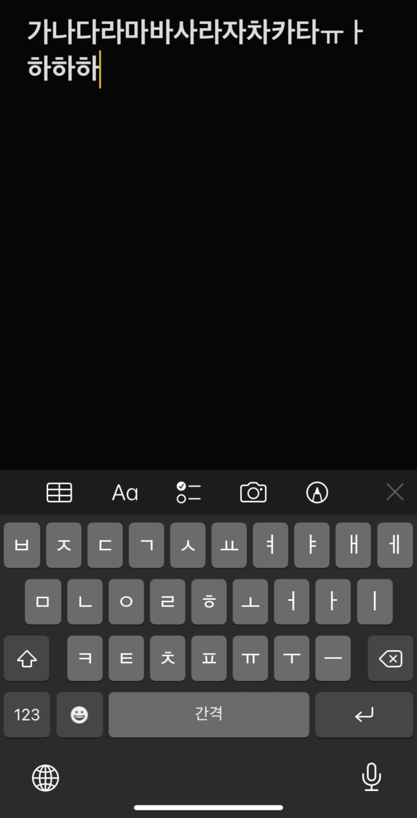 아이폰 커서 오타 수정방법은 스페이스바(간격) 탭을 꾹 눌러서 커서를 자유자재로 움직이면 됩니다.
