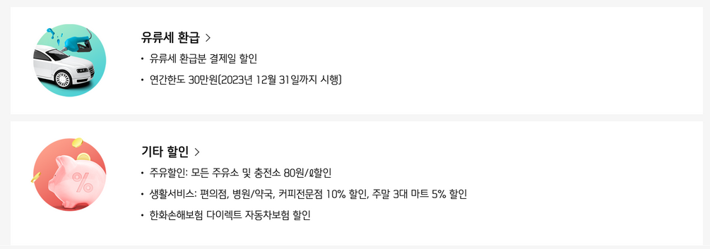 연회비 없이 신용카드를 이용할 수 있으면서, 경차 유류세 할인까지 된다니 경차를 소유하고 계신 분이라면 발급받아 사용하면 좋을 것 같습니다.