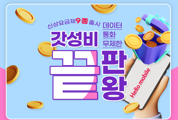가성비를 넘어 갓성비를 자랑하고 있는 알뜰폰 통신사 헬로우 모바일입니다.