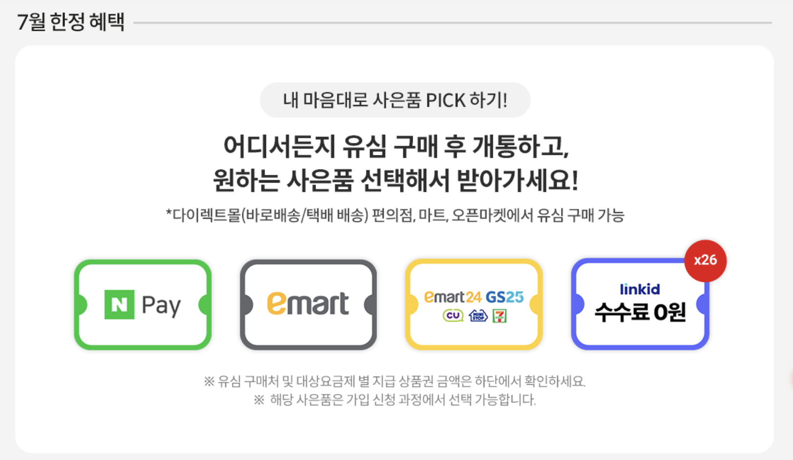 또, kt 알뜰폰에서 7월 한정으로 여러가지 혜택이 주어지고 있습니다.