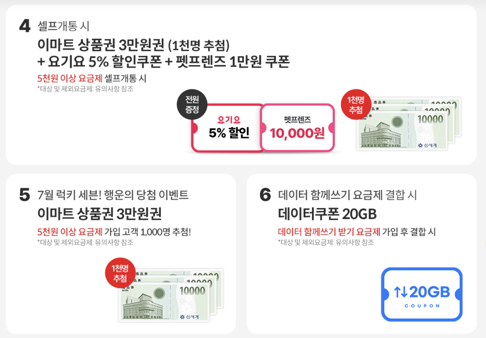 2. 다이렉트 몰 택배 배송/편의점, 마트/ 오픈마켓 유심 개통 시 상품권 3만원 권