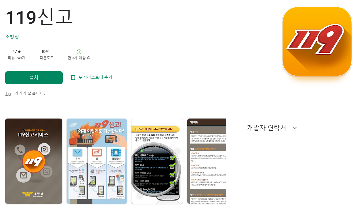 아이폰/안드로이드 2가지 전부 다운로드가 가능한 필수 어플 119앱 입니다.