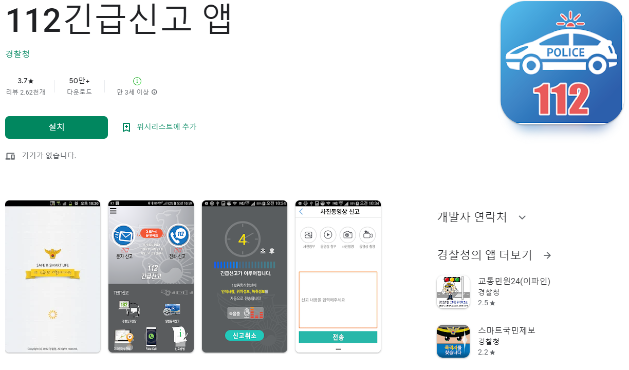 스마트폰 필수 앱! 112신고 어플입니다.