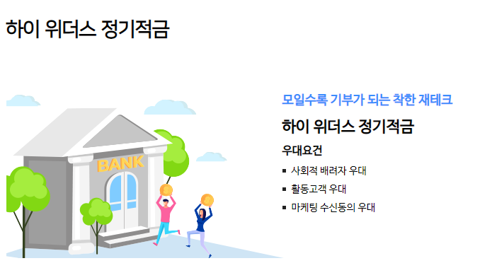 기부금까지 발생되는 좋은 적금이네요, 하지만 모든 사람이 가입할 수 있는 적금이 아니긴 합니다.