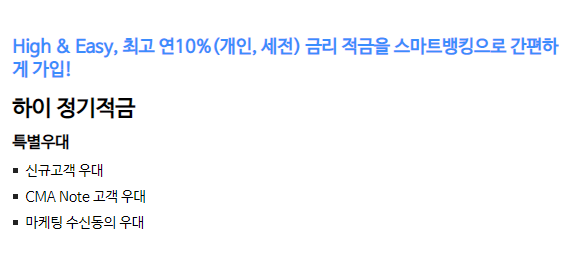 1. 3가지 우대요건으로 최고 연10%(세전) 금리를 받을 수 있는 스마트뱅킹 비대면 전용 정기적금 상품입니다.