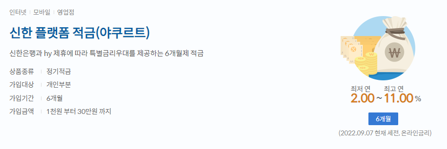 신한 플랫폼 적금(야쿠르트) 11.00%