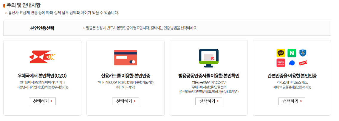 원하는 요금제를 선택하면 본인 확인이 필요합니다.